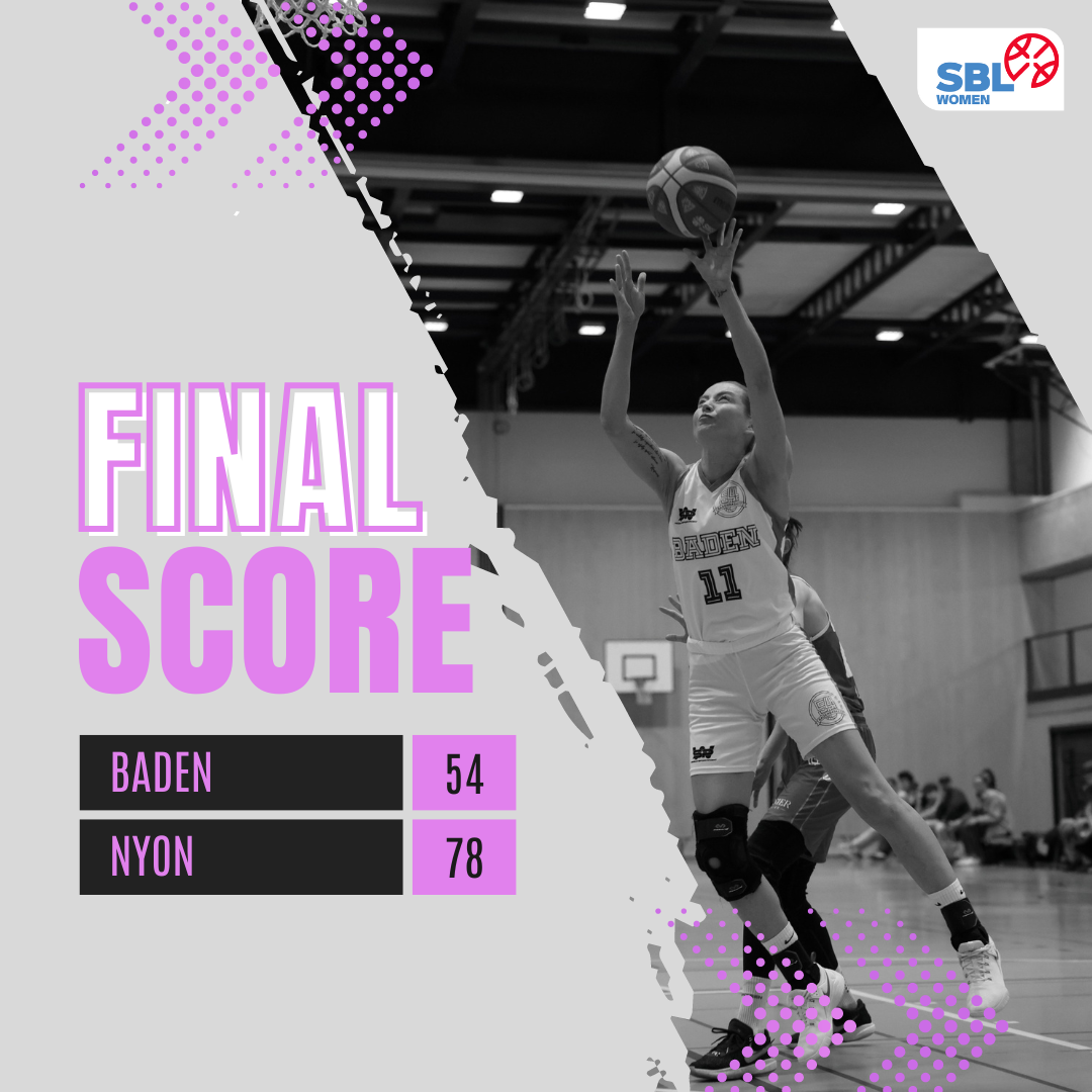 Im vierten Viertel drehte Nyon dann nochmals etwas auf und aufgrund einiger defensiver Schwierigkeiten der Badenerinnen konnten sie ihren Vorsprung schlussendlich auf 24 Punkte zum 78:54-Sieg ausbauen.