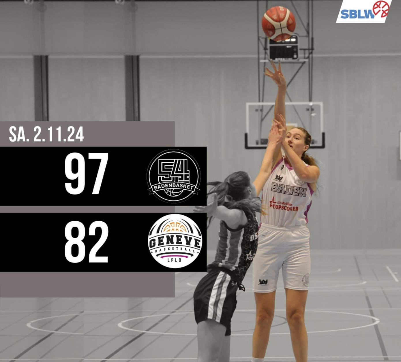 Im viertel Viertel intensivierten die Spielerinnen aus Genf die Verteidigung mit einer Press-Defense, was den Badenerinnen kurzfristig etwas Mühe bereitete, doch auch dies bekam man unter Kontrolle und brachte das Spiel mit dem Endresultat von 97:82 in trockene Tücher.