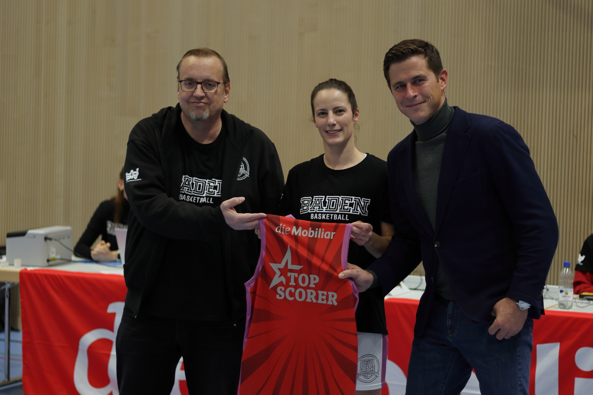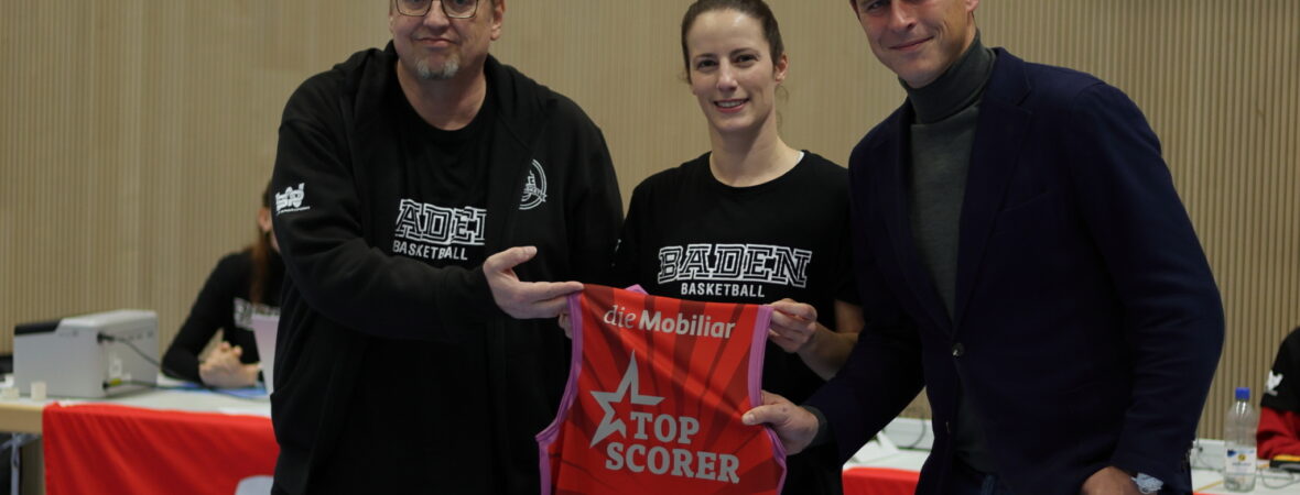 Im Vorfeld des Kantonsderbys zwischen Baden Basket 54 und BC Alte Kanti Aarau konnte das Dress des Mobiliar Topscorer an die bisher beste Punktesammlerin und zugleich Captain des Heimteams übergeben werden.