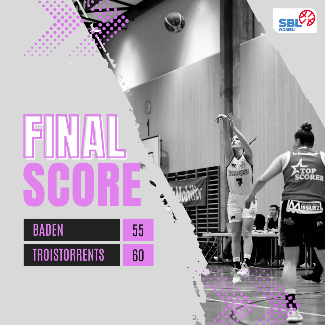 Im ersten Spiel des Jahres trafen die Badener NLA-Basketballerinnen zuhause auf das zweitplatzierte Troistorrents aus dem Wallis. Die Aufsteigerinnen aus Baden haben im Verlauf der bisherigen Saison bereits eine grosse Entwicklung gezeigt. Die letzten Spiele gingen auch gegen Teams aus den höheren Regionen in der Tabelle jeweils nur knapp verloren. Auf den langersehnten zweiten Sieg in der höchsten Liga warten die Badenerinnen jedoch nun bereits seit Mitte Oktober.