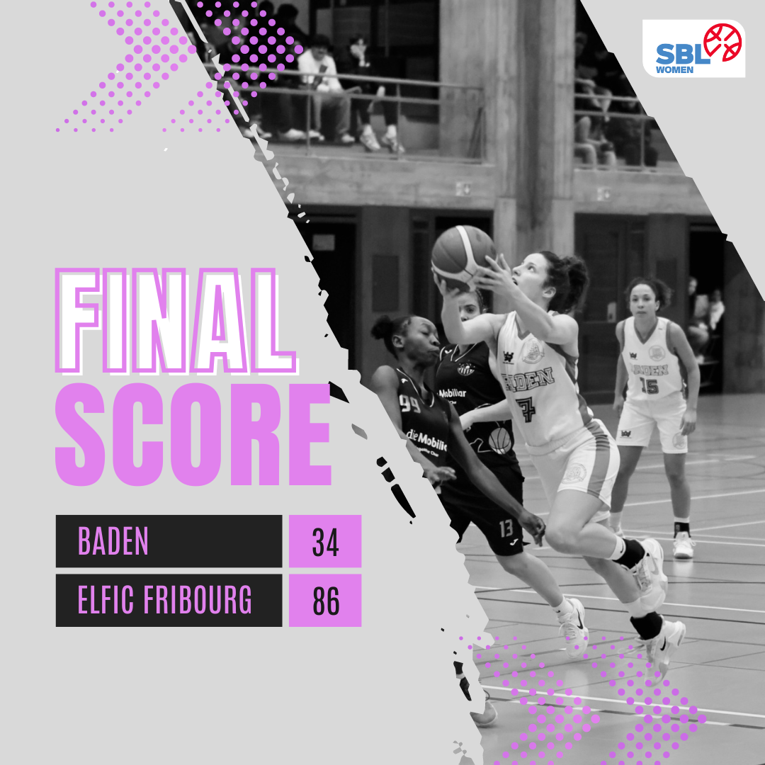 Am Freitagabend kam das ungeschlagene Fribourg nach Baden in die Kantonsschule. Baden bekundete Mühe mit der körperlichen Überlegenheit des Seriensiegers. So stand es zur Halbzeit 48:18 für Fribourg.