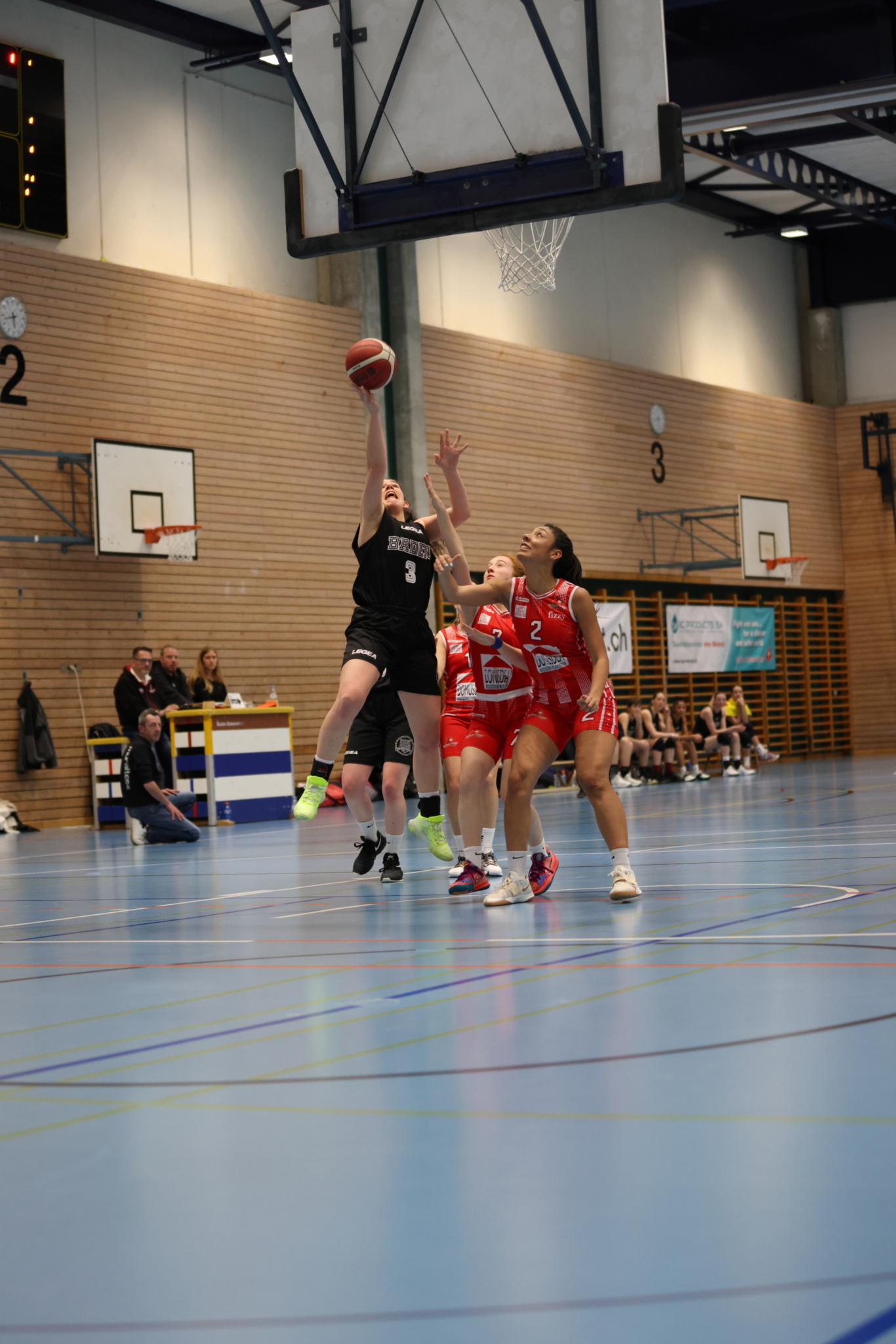 Das erste Viertel war sehr knapp und die über 1.90 grosse Innenspielerin von Muraltese konnte bereits 15 Punkte erzielen aus dem Feld, der Freiwurflinie und vom Dreier. Nach 10 Minuten stand es 18:22 für SP Muraltese. Dies musste bis zur Pause sofort gedreht werden, damit man mit einem kleinen Vorsprung in die zweite Hälfte starten konnte. Besonders Zuzi Egedova und Cinzia Ferrari konnten im zweiten Viertel den Lead übernehmen und verhalfen dem Heimteam damit zu einem Halbzeitergebnis von 39:38. Nach der Halbzeit war Muraltese fokussierter und konnte unsere Offense gut stoppen. Baden kam so nur zu 8 Punkten in diesem Viertel während die Gegnerinnen 14 Punkte erzielten. In diesem Viertel kam es zu vielen Fouls, was einigen Spielerinnen Mühe für eine aggressive Defense bot. Zum Ende dieses Viertel stand es 48:53. Im letzten Viertel wurde nochmals der volle Ehrgeiz ausgepackt und das Heimteam fing an flüssige Spielzüge mit Treffern zu zeigen. In den letzten Minuten vom 4. Viertel verhalfen noch zwei schöne Dreier von Cedrine Pitteloud und Zuzi Egedova zu einem klaren Sieg von 77:70. Die Gruppenphase schliesst Baden somit auf dem ersten Platz der Gruppe bzw. dem achten Platz insgesamt ab und die Play-Offs (direkt wieder gegen Muraltese) beginnen.
