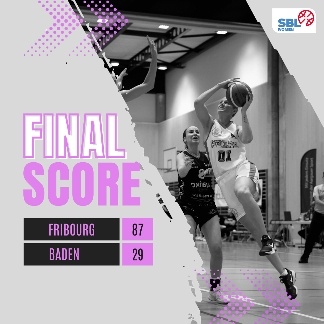 Neben der körperlichen Überlegenheit trafen die Gegnerinnen aus Fribourg in der Heimhalle zu Beginn des Spiels sehr viele ihrer Distanzwürfe, wohingegen bei Baden die Treffer einfach nicht fallen wollten. So stand es in der Halbzeit bereits 48:13.