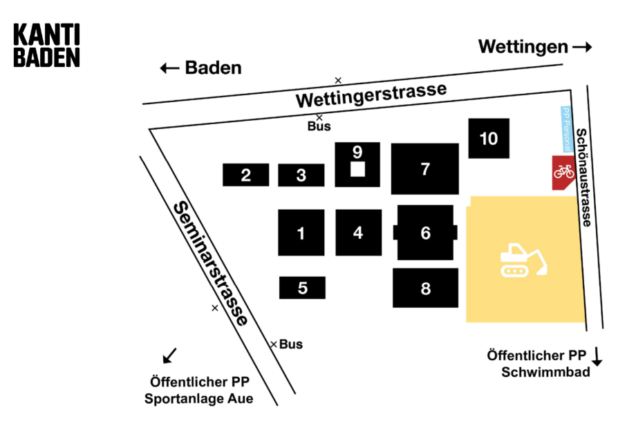 Wegen der Erweiterung der Kantonsschule Baden wurde das Parkdeck abgerissen. Dadurch hat es viel weniger Parkplätze direkt bei der Schule. Hier zeigen wir die Alternativen auf.