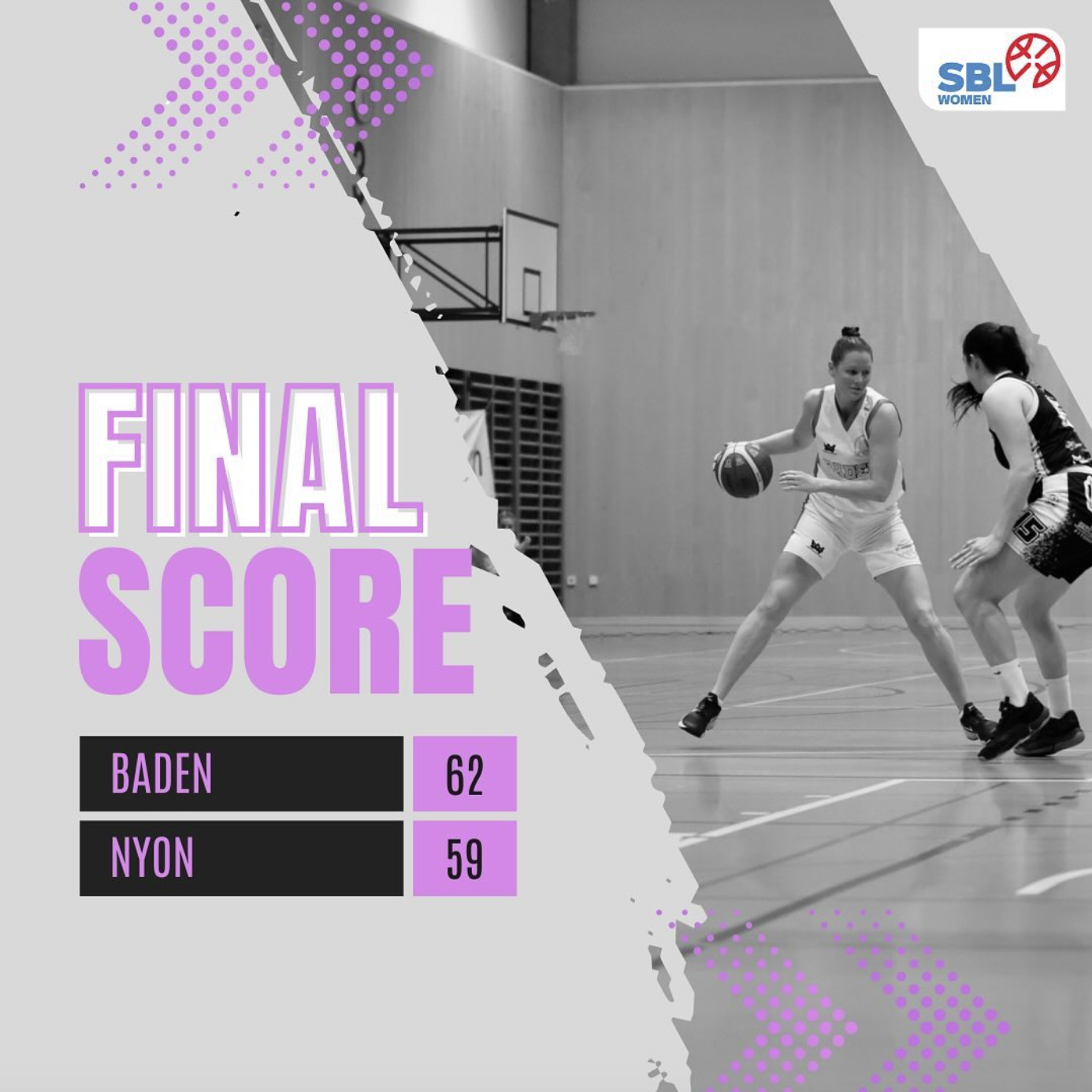 Nur eine Woche nach dem letzten Aufeinandertreffen kam Nyon bereits wieder nach Baden. Das letzte Spiel ging noch deutlich verloren, doch auch da zeigte sich, dass die Badenerinnen stellenweise gut mit den Zweitplatzierten mithalten können. In der Zwischenzeit reiste die amerikanische Profispielerin und Topskorerin von Baden unerwarteterweise aus persönlichen Gründen zurück in die USA, weshalb das Spiel nicht einfach zu werden versprach.