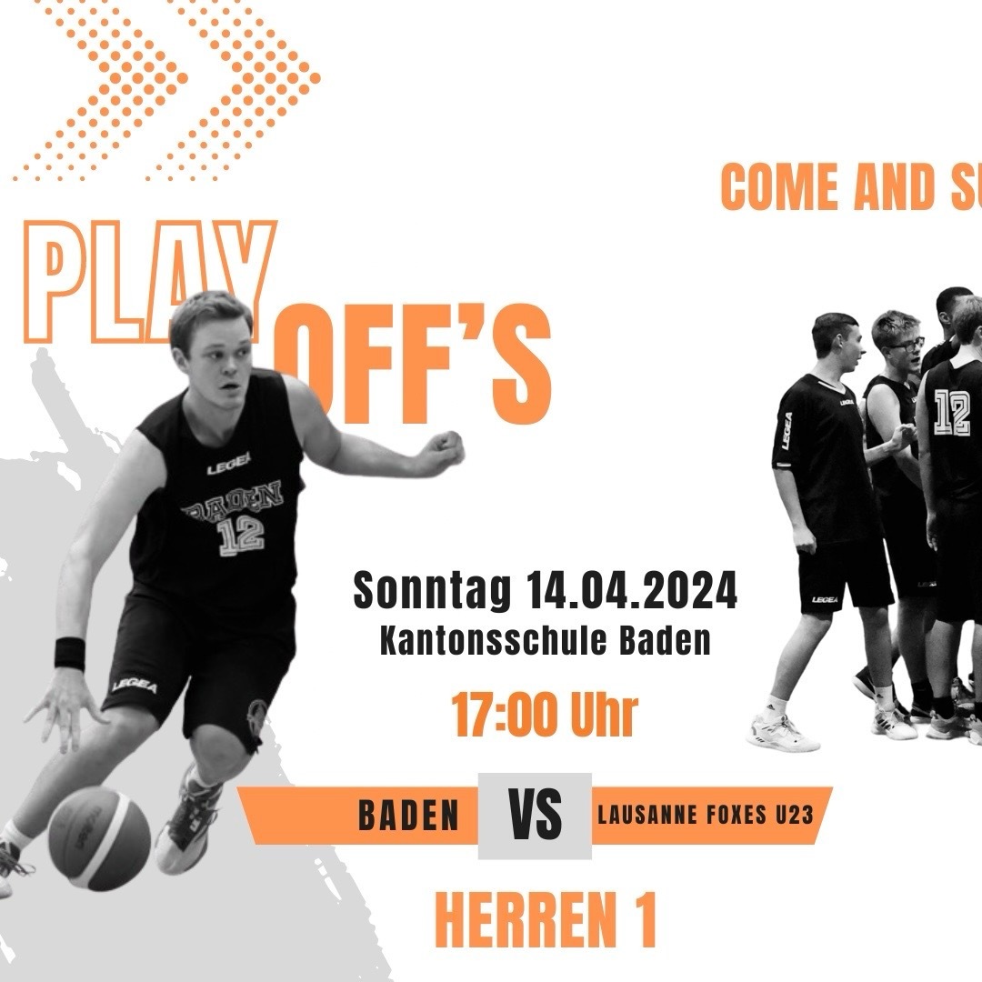 Am Sonntag findet das 1/8-Final Playoff-Spiel der Herren 1 gegen Lausanne Foxes U23 statt. Baden beendete die Saison auf dem 5. Rang und trifft somit auf das viertplatzierte Team aus der West-Gruppe. Die Ausgangslage verspricht somit ein spannendes Spiel und ist motiviert sich eine gute Ausgangslage zu erarbeiten für das Rückspiel, welches eine Woche später in Lausanne ausgetragen wird.