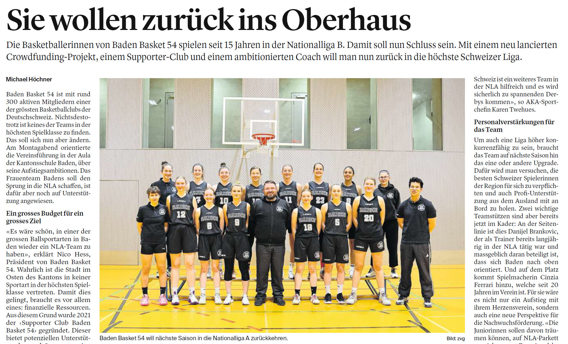 Am 10.05.2023 erschien der folgende Artikel von Michael Höchner im Badener Tagblatt.