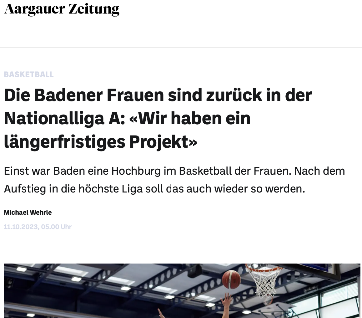 Am 11.10.2023 veröffentlichte die Aargauer Zeitung einen Artikel über den Saisonstart vom SBLW-Team (NLA).