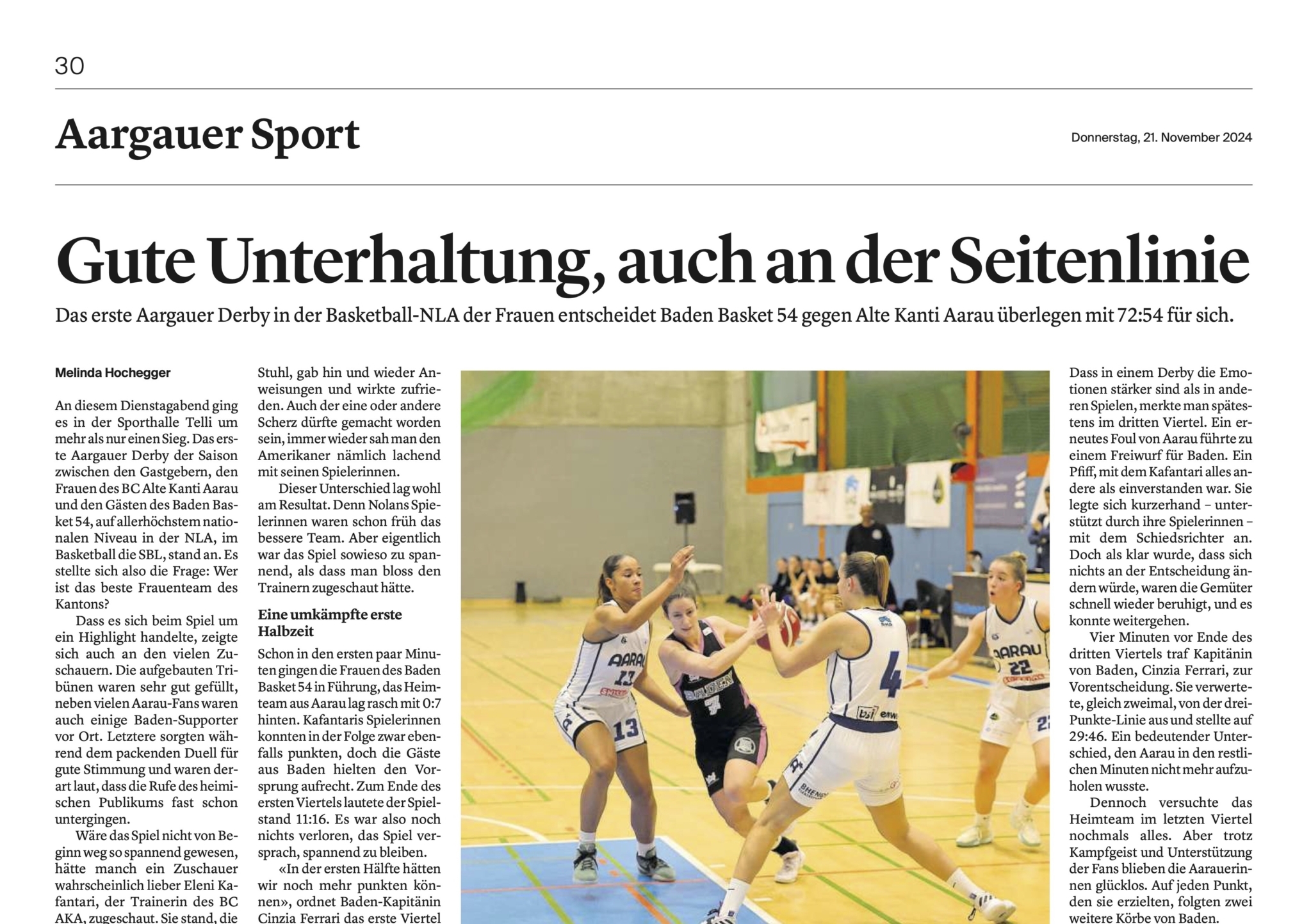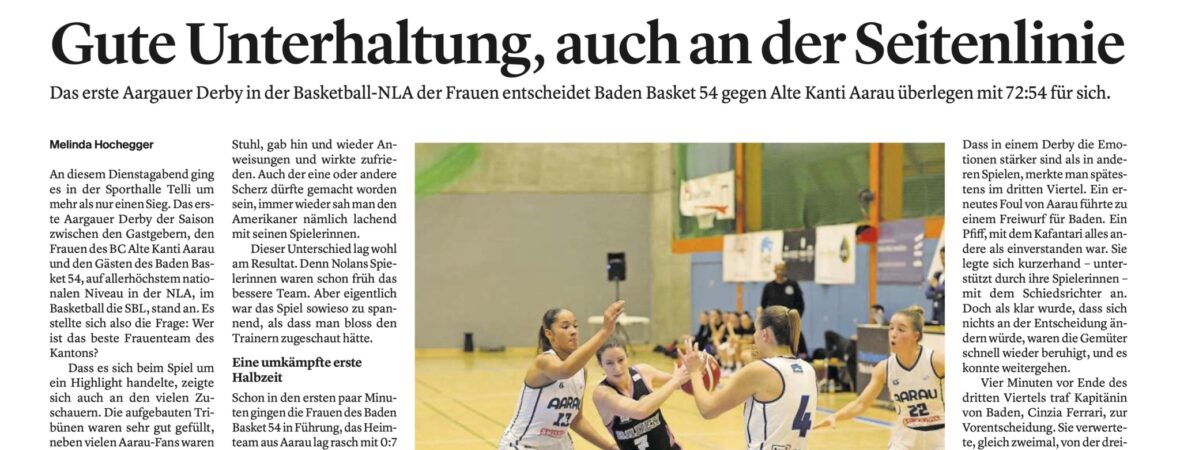 Am 21.11.2024 veröffentlichte das Badener Tagblatt einen Artikel über das Derby des SBLW-Teams gegen BC Alte Kanti Aarau.