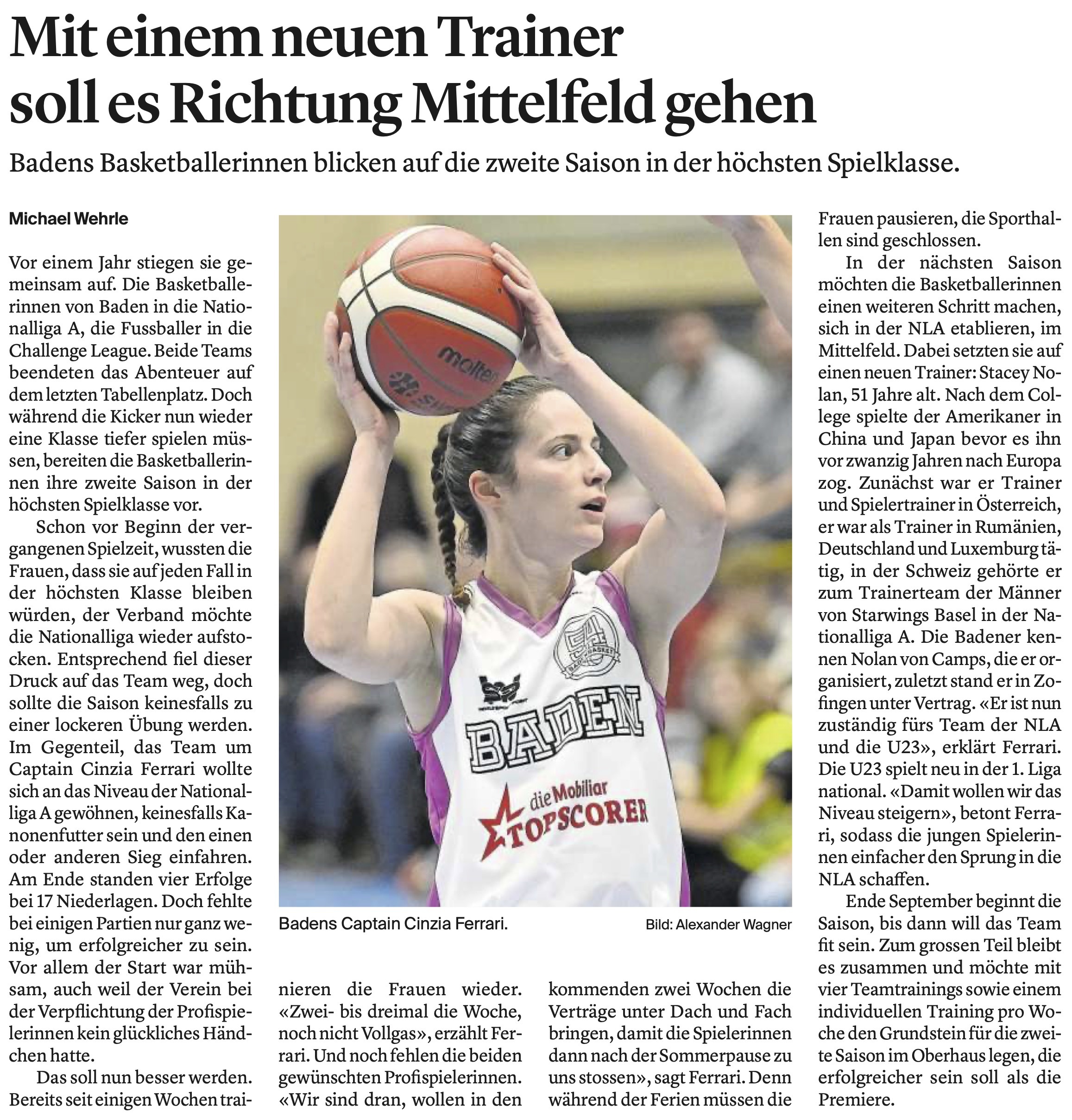 Am 25.06.2024 veröffentlichte das Badener Tagblatt einen Artikel über die Vorbereitungen der zweiten Saison vom SBLW-Team in der obersten Spielklasse.
